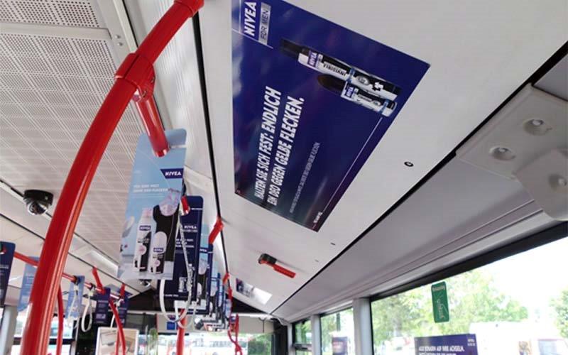 Im Innenraum von Bussen und Bahnen des ÖPNV finden Sie die ideale Plattform für Werbung. Vor allem die wiederkehrende Exposition auf Pendelstrecken fördert das Erinnern an Ihre Marke. Hier steht Ihnen eine breite Auswahl zur Verfügung: verwandeln Sie Swing Cards mit integriertem Gutschein zum idealen Response-Werbemittel, versehen Sie Seitenscheibenplakate mit einem SMS-Dienst für Gratis-Downloads oder schalten Sie Ihre Botschaft über Fahrgast TV in einem attraktiven Mix aus Information und Werbung. Wie auch immer, der Einsatzbereich ist groß – für alle kurzfristigen Aktionen oder Spot-Angebote bestens geeignet!