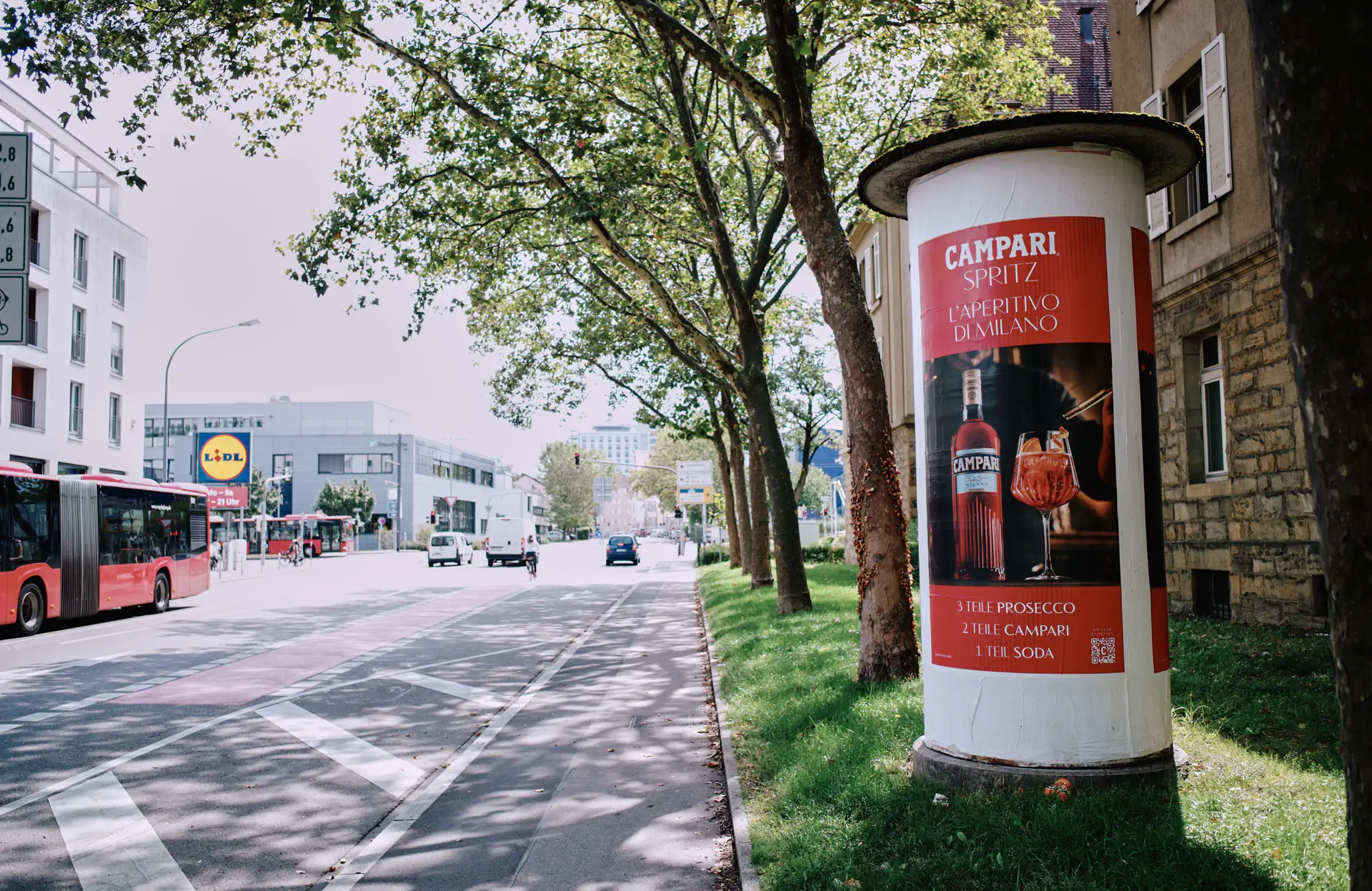 Mit der klassischen Litfaßsäule erzielt man – vor allem exklusiv von einem Kunden belegt – eine tolle Wirkung im öffentlichen Raum. Die Gestaltungsmöglichkeiten sind umfangreich und bieten Markenkunden aufgrund ihres Formats eine besondere Möglichkeit der Motivgestaltung. Die Säulen befinden sich an vielen, gleichmäßig über das Stadtgebiet verteilten Standorten, die bis in die Regionen hineinreichen. Sie bieten ein sehr attraktives Preis-Leistungs-Verhältnis und werden gern auch als Ergänzungsmedium zum 18/1 Plakat gebucht.